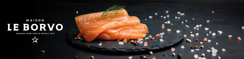 For 45 years, Maison Le Borvo, a family business founded by a former Michelin-starred chef, has been the gastronomic benchmark for smoked salmon. The salmon (Salmor Salar) from Norway and Scotland is carefully selected. The dry salting process is light and subtle to preserve the delicacy of the fish. Similarly, cold smoking with beech sawdust enriches the fish with subtle notes and serves only to enhance the unique flavour of salmonids. Carefully matured and then sliced, Maison Le Borvo's smoked salmon reveals its full flavour and remains a guarantee of quality.